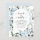 Das Budget Dusty Blue Floral Rose und Eukalyptus Botanical Greenery Watercolor Spring oder Summer Wedding Brunch und Bubbly Champagne Bridal Shower Einladungen - beinhaltet schöne und elegante Schrift Typografie mit modernen tropischen botanischen Blume und Grün für die besondere Braut zu sein zu feiern.