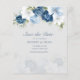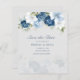 Elegante florale Aquarellfarben staubige blaue, weiße und marineblümte Bouquet Hochzeit speichern die Dattelkarte. Die Karte verfügt über ein Skript "Save the Date", das in einen Schriftart Ihrer Wahl geändert werden kann, der hier verfügbar ist, wenn Sie auf "Personalisieren" klicken.