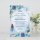 Modern Dusty Blue Silver Slate Gray Glitzer Sparkle Rose Butterfly Prinzessin Tiara Crown Quinceñera Geburtstagseinladung