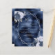 Dieses moderne Hochzeitsmenü besticht durch einen silbernen geometrischen Rahmen, der mit staubblauen, marineblau und silberblauen Blumenbouquets auf einer Folie mit marineblauen blauen Imitaten dekoriert ist. Der anpassbare Text kombiniert silbergraue, weißliche Handschrift, Kupferplatte und kursiven Schriftart.