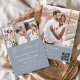 Budget Dusty Blue Die Hochzeit von modernen eleganten QR-Code, vier (4) Foto Collage und große Datum Minimalistische Hochzeit Einladung. Die Einladungskarten für Hochzeiten enthalten eine moderne Typografie, die elegant, einfach und modern zu bedienen ist, nachdem Sie minimalistisch einfache Hochzeitsfeier.