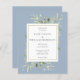 Mit zarten Aquarellfarben-Blätter auf staubblauem Hintergrund kann diese schicke botanische Einladung zur Hochzeitsfeier personalisiert werden. Entwickelt von Thisisnotme©