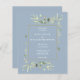 Mit zarten Aquarellfarben-Blätter auf staubblauem Hintergrund kann diese schicke botanische Einladung zur Hochzeitsfeier personalisiert werden. Entwickelt von Thisisnotme©