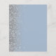 Die links Kulisse dieser eleganten, modernen Hochzeitseinladung besticht durch eine silberne Imitat-Glitzer-Grenze. Der anpassbare Text kombiniert weiße Handschrift, Copperplate und kursiv Schriftart auf einem staubblauen Hintergrund. Auf der Rückseite ist ein passendes silberfarbenes und staubblaues Design erkennbar.