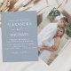 Budget Dusty Blue Wedding Spring oder Summer Foto on Back Wedding Einladungen - beinhaltet eine schöne und elegante Schrift Typografie mit einer modernen, einfachen und klassischen Farbe für die besondere Hochzeitstagsfeier.