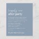 Einfache, preisgünstige, staubblaue Hochzeitsankündigung und Einladung zum Empfang. Die Vorderseite zeigt "Happily Ever After Party" in einer Mischung aus zeitgenössischem Weiß-Drehbuch und fett moderner weißer Typografie. Personalisieren Sie Ihre Nachricht und Einladung und fügen Sie Ihre Namen in ein signaturähnliches Skript ein. Dieses halbglänzende Haushaltspapier ist gewichtsähnlich wie Foto. Es ist auch eine größere 12x18-Kartenversion verfügbar (für den Link die Meldung).