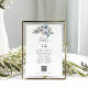 Elegante dustig blühende Hochzeitskizze mit Gästeliste und individueller QR-Tischnummer