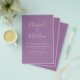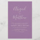 Budget Personalisieren Sie diese Lila Dusty Lavender Amethyst Einfache und elegante doppelseitige Einladung mit Ihrer Nachricht und Details. Diese schicke Einladung beinhaltet eine moderne und elegante, einfache handgeschriebene Schrift-Typografie für die besondere Hochzeit zu sein.