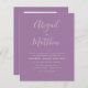 Budget Personalisieren Sie diese Lila Lavendel Amethyst Einfach und elegant doppelseitig mit Foto auf der Rückseite Einladung mit Ihrer Nachricht und Details. Diese schicke Einladung beinhaltet eine moderne und elegante, einfache handgeschriebene Schrift-Typografie für die besondere Hochzeit zu sein.