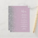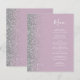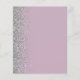 Die links Kulisse dieses eleganten, modernen Hochzeitsmenüs besticht durch einen silbernen Glitzer-Rahmen mit Imitaten. Der anpassbare Text kombiniert weiße Handschrift-Skripte und Copperplate-Schriftart auf einem staubigen lila Hintergrund. Die Rückseite ist mit einem passenden dustigen Lila- und Silberdesign versehen.