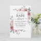 Budget Dusty Rose Pink Floral Rose und Eukalyptus Botanische Vegetation Watercolor Frühjahr oder Summer Baby Shower Einladungen - beinhaltet schöne und elegante Schrift Typografie mit modernen botanischen Blume und Grün für die besondere Mutter zu feiern für ein Baby Boy oder Baby Girl Neuankündigung.