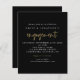 Einfach Script Gold Black Verlobung einladen. Ein Preis SMALLER 4,5" x 5,6" Alternative. Erhältlich in einem SEMI GLOSS 110lb CARD STOCK, welches die Standardoption ist (empfohlen für Einladungen), ODER einem SATIN FINISH 80lb THINNER PAPER STOCK (ideal für Gehäuse). Umschläge sind optional und etwas größer als die Kartengröße. Moderner Minimalismus in klassischem Schwarz mit Gold und Weiß Typografie. Verlobung ist Set im modernen Stil der Handschrift. Personalisieren Sie einfach die Erholung des Textes auf Ihren eigenen.