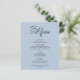 Mit unserem Minimalistischen Dusty Blue Wedding Menü erhalten Sie ein sauberes, modernes Aussehen ohne Kompromisse in Stil und Qualität. Diese Karte ist für Paare gedacht, die Details und sinnliche Ausgaben in Liebe bringen. Sie bietet zeitlose Eleganz mit minimalistischer Ästhetik - perfekt für jedes Hochzeitsthema. Elegant, einfach und preisgünstig - dieses Hochzeitsmenü beweist, dass weniger wirklich mehr sein kann.
