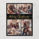 Budget Einfach Moderne Elegante Kalligrafie Schwarz und Gold 5 Foto Collage Frohe Weihnachts Script Holiday Card. Dieses festliche, minimalistische, fünf (5) Foto Feiertage Grußkarte Vorlage zeigt eine hübsche Gitter Foto Collage und sagt "Frohe Weihnachten"! Der Grußtext "Frohe Weihnachten" ist in einer wunderschönen Hand geschrieben, die Wirble Swash-Schwanz-Schriftart-Skript in Gold auf schwarzem Hintergrund. Auf der Rückseite mit vorgefertigter Grußmeldung mit einem kleinen Herzdoodle auf weiß und einer horizontalen Bildvorlage. Hübsche Grußkarte für Ihre Familie und Freunde in der Weihnachtszeit. Günstige Weihnachtskarten.