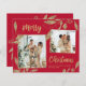 Budget, Elegant, Moderne Rot und Gold Botanische Blätter 2 Foto Collage Frohe Weihnachtskarte (dünn!). Hinweis: dünner als eine Postkarte! Diese festliche, skurrile Zwei (2) Foto Ferienkarte Vorlage verfügt über eine hübsche Foto Collage, Imitate Gold-Folie botanischen Blätter, Winterbeeren und sagt Frohe Weihnachten! Der "Frohe Weihnachten"-Grußtext ist in einem handgeschriebenen Schriftzeichen-Schriftart auf karminrotem Hintergrund geschrieben. Auf der Rückseite ein waagerechtes Foto mit Goldrahmen und Imitaten, Blätter mit Goldfolie aus Glitzer auf Rot. In dieser Weihnachts- und Feiertagssaison haben Sie die Wahl für Ihre Familie und Freunde. Billige Urlaubskarten.