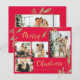 Budget, Elegante, Moderne Gold und Rote Botanische Blätter 4 FotoCollage Frohe Weihnachtskarte. Dieses festliche, mimimalistische, skurrile vier (4) Foto-Urlaubskarte-Vorlage verfügt über eine hübsche Foto Collage, Imitate Gold-Folie botanische Blätter, Winterbeeren und sagt Frohe Weihnachten! Der Grußtext "Frohe Weihnachten" ist in einem handgeschriebenen Schriftzeichen-Schriftart auf rotem Hintergrund geschrieben. Auf der Rückseite ein waagerechtes Foto mit Goldrahmen und Imitaten, Blätter mit Goldfolie aus Glitzer auf Rot. Hübscher Sake für Ihre Familie und Freunde in dieser Weihnachts- und Feiertagssaison. Billige Urlaubskarten.