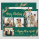 Budget, Elegante, Moderne Gold und Smaragdgrüne botanische Blätter 4 FotoCollage Frohe Weihnachtskarte. Dieses festliche, mimimalistische, skurrile vier (4) Foto-Urlaubskarte-Template verfügt über eine hübsche Foto-Collage, Imitate Gold-Folie botanische Blätter, Winterbeeren und sagt Frohe Weihnachten und Glück Neues Jahr! Der Grußtext "Frohe Weihnachten und Glück im neuen Jahr!" ist in einem handgeschriebenen Schriftzeichen-Schriftart auf dunklem Waldgrün oder smaragdgrünem Hintergrund geschrieben. Auf der Rückseite ein waagerechtes Foto mit Goldrahmen und Imitaten, Blätter mit Goldfolie aus Glitzer auf Grün. Hübscher Sake für Ihre Familie und Freunde in dieser Weihnachts- und Feiertagssaison. Billige Urlaubskarten.