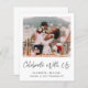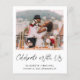 Das elegante, preisgünstige Ambiente und die kleinere Hochzeitsankündigung und der Empfang oder die Party Einladung nach der Hochzeit. Die Vorderseite zeigt Ihr Foto, "Celebrate With Uns" in einem eleganten Skript und Ihre Vornamen und Hochzeitstag und Ort in einfachen modernen Typografie. Auf der anderen Seite können Sie Ihre Hochzeitsankündigung oder Eröffnungsverkündung detaillierter personalisieren, einen Empfang oder eine Party Einladung hinzufügen und Ihre verheirateten Namen in einem signaturähnlichen Skript unterschreiben. Dieses halbglänzende Haushaltspapier ist gewichtsähnlich wie Foto. Es ist auch eine größere 12x18-Kartenversion verfügbar (für den Link die Meldung).