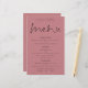 Budget Elegantes Script Dusty Rose Wedding Menü. Ein preiswertes 5,5" x 8,5", Ein stilvolles typografisches Design mit einem informellen Set-Skript für das Header-Menü. Personalisieren Sie einfach die Erholung des Textes auf Ihre eigenen Details, die Alternativen für Ihre veganen oder vegetarischen Optionen beinhaltet. Sie können auch Textstile und -farben sowie die Hintergrundfarben ändern, indem Sie die Option Weitere Einstellungen vornehmen.