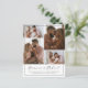 Eine minimalistische Foto-Hochzeitseinladung mit eleganten Schriftzeichen-Namen und klassischer Typografie mit 5 Fotos. Die Vorderseite der Budgetkarten ist mit einer Collage von 4 Foto und die Rückseite hat ein großes Foto. Das 4-Foto-Raster besteht aus zwei porträtierten vertikalen Fotos und zwei Querbildern. Die Namen des Ehepaares werden in schicken Schriftzeichen mit dem Einladungstext und dem Datum der Hochzeit geschrieben. Wir haben uns entschieden, nur die Basisinformationen auf der Kartenvorderseite zu zeigen, während wir 4 Ihrer Lieblings-Verlobung-Fotos zeigen, damit diese als hochgehaltene Keepsakes oder gerettet werden können. Wir haben Template-Fotos von einem Ehepaar gewählt, das in einer boho Farbpalette sitzt, aber Sie können alle Fotos, die Sie wollen, verwenden - Fotos aus Feiertagen, Selektionen, Vorschlag-Fotos, oder die Bilder aus einer Verlobung Foto. Karten kehren mit der Erholung der unten stehenden Veranstaltungsdetails in minimalistischer Serifentypografie zu einem großen Bild Ihrer Wahl zurück. Diese einfache und elegante Einladung ist perfekt für eine moderne Hochzeit. Das minimale, vielseitige Design ist für jede Saison oder Hochzeitsreise geeignet. Wir haben für dieses Design eine zeitlose Schwarzweiß-Farbkombination gewählt, um sicher zu gehen, dass es mit Ihren Fotos übereinstimmt, aber Sie können jede Farbe mit Zazzles Designwerkzeug ändern. Klicken Sie auf "Personalisieren" und erstellen Sie Ihre eigenen Einladungen. Als Teil der Budgetauswahl auf Zazzle ist dieses Blatt keine Standard-Einladungsgröße oder Papierqualität. Wenn Sie dieses Design auf einer Einladungskarte gewollt haben, können Sie es in unserem Shop finden oder mit der Zazzle Make Machine auf das Produkt Ihrer Wahl übertragen. Es gibt eine zweite Version dieses Designs in unserem Shop oder in der Sammlung auf dieser Seite. Zögern Sie nicht, mich bei Fragen oder Wünschen zu kontaktieren - ich helfe Ihnen gerne!