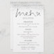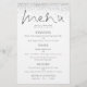 Budget Elegantes Script Silver Glitzer Hochzeitmenü. Ein preiswertes 5,5" x 8,5", Ein elegantes Design, mit einem stilvollen Set-Skript für das Header-Menü. Personalisieren Sie einfach die Erholung des Textes auf Ihre eigenen Details, die Alternativen für Ihre veganen oder vegetarischen Optionen beinhaltet. An beiden Seiten verläuft eine silberne Imitat-Glitzer-Grenze entlang der oberen Kante. Sie können auch Textstile und -farben sowie die Hintergrundfarben ändern, indem Sie die Option Weitere Einstellungen vornehmen.