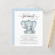 Eine niedliche und preisgünstige Anreise mit der Baby-Boy-Dusche mit der Einladung "Eine süße kleine Erdnuss ist auf seinem Weg", die in einer Mischung aus sanfter grauer, moderner Typografie und stilvollen Schriften sowie einer pastellblauen Aquarellfarbe eines Babyelefanten geschrieben wurde. Personalisieren Sie den Namen der Mutter und Duschdetails in einfachen grauen Typografie.
