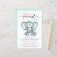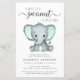 Eine niedliche, geschlechtsneutrale Babydusche mit "A Sweet Little Peanut Is On its Way" in sanft grau moderner Typografie und stilvollem Drehbuch sowie einer pastellfarbenen, minzgrünen Aquarellfarbe eines Babyelefanten. Personalisieren Sie den Namen der Mutter und Duschdetails in einfachen grauen Typografie.