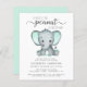 Eine niedliche und preisgünstige, geschlechtsneutrale Babysprinkle-Dusche mit der Einladung "Ein süßer kleiner Erdnuss ist auf seinem Weg" (auf Wunsch in "seinen" oder "Ihren" Weg wechseln), die in einer Mischung aus weicher grauer Typografie und stilvollem Drehbuch sowie einer pastellfarbenen, minzgrünen Wasserfarbe eines Babyelefanten geschrieben wurde. Personalisieren Sie den Namen der Mutter und Duschdetails in einfachen grauen Typografie.