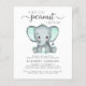 Eine niedliche und preisgünstige, geschlechtsneutrale Fahrt mit einer Babydusche-Einladung mit "A Sweet Little Peanut Is On its Way" (Sie können in "Seine" oder "Ihre" Art wechseln), die in einer Mischung aus weicher grauer Typografie und stilvollem Drehbuch geschrieben ist, und einer pastellfarbenen, minzgrünen Aquarellfarbe eines Babyelefanten. Personalisieren Sie den Namen der Mutter und Duschdetails in einfachen grauen Typografie.