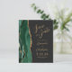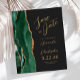 Die links Seite dieses eleganten, modernen Hochzeitsgeschehens bewahrt die Dattelkarte mit einem smaragdgrünen Aquarellstreifen in Aquarellfarbe, der mit Imitaten vergoldetem Glitzer bestickt ist. Der anpassbare Text kombiniert goldfarbenes Skript und singt serifenlose Schriftart auf schwarzem Hintergrund. Auf der Rückseite ist ein passendes grün- und goldfarbenes Agatdesign zu sehen.