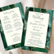 This elegant, modern wedding program features an emerald green agate background trimmed with gold faux glitter. The text appears in elegant emerald green handwriting and copperplate fonts on an ivory rectangle.