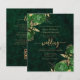 Diese elegante Hochzeitseinladung besticht durch grüne Blumensträuße mit goldfarbenem Imitat-Foliengärten in zwei Ecken, auf einem Hintergrund des smaragdgrünen Aquarells. Der anpassbare Text kombiniert goldfarbene Serif-, Kursivschrift- und Handschriftzeichen-Schriftart. Die Rückseite bietet Platz für Hochzeitsdetails auf grünem Hintergrund, zusammen mit einem QR-Code, den Gäste scannen können, um Ihre Website und Ihre UAWG.