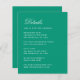 Eine sehr einfache, preiswerte Hochzeitskarte, nur weißer Text auf smaragdgrünen Hintergrund, eine sehr moderne Nuance von Grün. Der Titel "Details" (die geändert werden können) ist in einem eleganten kalligrafischen Skript geschrieben.