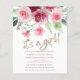 Budget Es ein Mädchen Moderne rosa Burgundy Floral Baby Dusche Einladung