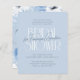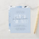 Eine staubige blaue Brautparty-Einladung mit fett formatierter Typografie und handgeschriebenen Schriftzeichen. Die Vorderseite der Karte weist einen hellblauen Hintergrund auf, mit "Brautparty" in weißer Deko-inspiriert Typografie. Der Name der Braut ist in schicker, moderner Kalligraphie darüber geschrieben. Oben und unten erscheinen die Veranstaltungsdetails in eleganter formaler Serifentypografie. Die Karten kehren zu einem Blumenmuster in Aquarellfarbe um. Als Teil der Budgetauswahl auf Zazzle ist dieses Blatt keine Standard-Einladungsgröße oder Papierqualität. Wenn Sie dieses Design auf einer Einladungskarte gewollt haben, können Sie es in der Sammlung finden oder mit der Zazzle Make Machine auf das Produkt Ihrer Wahl übertragen. Sehen Sie sich die Sammlung auf dieser Seite für passende Artikel oder besuchen Sie unseren Shop für weitere Brauchtum-Dusche-Einladungen!
