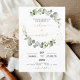 Eukalyptus Greenery Kulent Botanischer Wasserfarbenfrühling Einladung zur Hochzeit auf weißem Hintergrund - beinhaltet eine wunderschöne und elegante Schrift-Typografie mit modernen botanischen Blätter und Grün für die besondere Hochzeitstagsfeier.