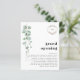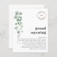 Budget Eucalyptus QR Code Store Grand Opening Logo. Ein großer Wert SMALLER 4.5" x 5.6" Alternative. Erhältlich in einem SEMI GLOSS 110lb CARD STOCK, der die Standardoption ist (empfohlen für Einladungen, ähnlich der Dicke einer Postkarte), ODER einem SATIN FINISH 80 lb THINNER PAPER STOCK (ideal für Gehäuse). Ihr Logo ist oben und kann die Typografie mit Ihren Details auf beiden Seiten leicht personalisieren. Ändern Sie einfach das Beispielbild mit Ihrem eigenen Logo und ersetzen Sie auf der Rückseite den QR-Beispielcode mit Ihrem eigenen auf Ihre Webseite. Moderne Eukalyptus-Blätter in Aquarellfarbe fließen von den links ab.
