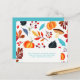 Attraktive moderne Erntedank-Karte mit Blätter und Kürbissen in lebhaften Farben. Textvorlagenfelder auf beiden Seiten stellen sicher, dass Sie Ihren jährlichen Aufholbrief für Ihre Freunde und Familie schreiben können. Umschläge nicht enthalten.