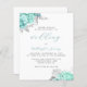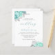 Budget Floral Aqua Silver QR Code Wedding Invite