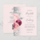 Die links Seite dieses eleganten, modernen Hochzeitseinladens besticht durch ein Blumenstrauß in Bordeaux- und Rosatönen, das mit Silberfolie aus Imitat und Imitaten Glitzer bedruckt und mit silberfarbenem Imitat-Glitzer bestreut ist. Der benutzerdefinierbare Text kombiniert graue Schrift, Copperplate und kursiv Schriftart auf einem Hintergrund mit einem Hintergrund. Fügen Sie zusätzliche Details auf der Rückseite, zusammen mit einem QR-Code, um Ihren Gästen zu helfen, besuchen Sie Ihre Hochzeitswebsite.