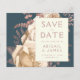 Diese elegante Hochzeitskarte Save the Date mit einem üppigen, romantischen Blumenstrauß in Elfenbein mit Rose Goldfolie und Glitzer-Blattwerk auf aquamarinem blauen Hintergrund. Passen Sie den Rose-farbenen Text in stilvollen Schriftart auf einem ElfenbeinRechteck an, und fügen Sie Ihre Hochzeitwebsite-URL dem soliden aquamarinen Rücken hinzu.