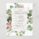 Ein elegantes Aquarellbouquet aus Elfenbein-Rose, umgeben von grünen Eukalyptus-Blätter und goldgelbem Blattwerk der Rose, bildet den Hintergrund für den Holzkohle-Grautext auf einem weißen rechteckigen Bildschirm.