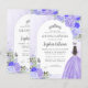 Blumenleichter Lila Violet Silbergraue Prinzessin Gown Dress Glitzer Sparkle Tiara Crown Butterfly 15. Geburtstag BILINGUAL Spanischer Quinceanera Einladung