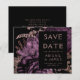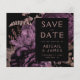 Diese elegante, launische Hochzeit Save the Date-Karte bietet ein üppiges, romantisches Blumenstrauß lila mit Rose Gold Imitate Folie und Glitzer Blattwerk auf einem schwarzen Hintergrund. Passen Sie den Rose-farbigen Text in stilvollen Schriftart auf einem schwarzen Rechteck an. Fügen Sie zusätzliche Details auf der Rückseite, und geben Sie Ihre Hochzeitswebsite URL, um einen QR-Code zu generieren.