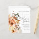 Eine kleinere 4,5 x 5,6" Einladung zu einem günstigen Preis auf einer halblauen 110lbs Karte, ähnlich dick wie eine Postkarte (obwohl nicht als Postkarte verschickt werden kann). Floral Pumpkin Script Halloween-Party White, Ein Set handgeschriebenes Skript für Halloween Soirée und die Erholung des Textes können Sie leicht personalisieren. Herbstfarbene Blumen und Kürbis runter auf der links Seite und über den Grund und sind auch auf der Rückseite.