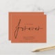 Budget beschlossen auf Forever QR Code Terracotta Save the Date Ein Budget Preis SMALLER 4.5" x 5.6" Alternative. Erhältlich in einem SEMI-GLOSS 110 lb CARD STOCK, der die Standardoption (dicker für Einladungen) ist, ODER einem SATIN FINISH 80 lb THINNER PAPER STOCK (ideal für Gehäuse). Fügen Sie Ihren QR-Code auf der Rückseite Ihrer Hochzeitswebsite hinzu. Ein stilvolles Set-Skript befindet sich in der Mitte. Die Erholung des Textes können Sie leicht personalisieren. Text- und Hintergrundfarben können geändert werden, wenn Sie Ihr Hochzeitstil besser Anzug über die weitere Option anpassen möchten.