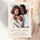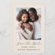 Diese schlichte, minimalistische Save the Date Karte weist ein vertikales Foto über den Worten "Save the Date" in elegantem goldfarbenem Handschriftenschreiben auf, gefolgt von den Namen der Ehepaare, dem Hochzeitstag und der Stadt in serifenlosen Sans-Schriftart auf beigem Hintergrund. Fügen Sie eine detailliertere Nachricht mit weiteren Informationen auf der Rückseite hinzu.