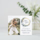 Diese boho Save the Date Karte verfügt über einen bohenhaften Aquarellkranz mit weißen Blume, getrocknetem Blattwerk und einen blauen Mond auf einem goldenen, kreisförmigen Rahmen. Ersetzen Sie das Beispielbild einfach durch ein Foto von Ihnen beiden. Passen Sie die elegante blaue Handschrift mit den Namen der Braut und des Bräutigams an, und die serifenlosen Schriften mit Datum und Ort. Die Rückseite ist ein passender Schatten von massivem Marineblau.