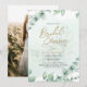 Die atemberaubende neue Brautdusche, perfekt für das moderne Paar, das eine Touch von Eleganz und botanischem Charme sucht. Die Einladungen zeichnen sich durch eine wunderschöne moderne Typografie und ein Foto des verlobten Ehepaares auf der Rückseite aus, das Ihrem besonderen Tag eine persönliche Touch verleiht. Das Design ist wunderschön mit Eukalyptus-Blätter in Aquarellfarben dekoriert, einer atemberaubenden Vegetation, die es für alle Jahreszeiten geeignet macht - ob Frühjahr, Sommer, Herbst oder Winterhochzeit. Die subtilen Goldakzente verleihen dem Gesamtdesign eine Touch Luxus und machen es zu einem idealen Ort für einen eleganten Garten, eine Hochzeit im Freien oder einen Hinterhof. Mit seinem boho-schicken Ambiente und seiner zeitlosen Eleganz sind diese Brautparty- oder Paarduschen ideal für Paare, die eine natürliche Schönheit in ihren großen Tag integrieren möchten. Ob Sie eine klassische oder böhmisch inspiriert Hochzeit planen, diese Brautduscheinladungen werden sicher eine Aussage treffen. Laden Sie Ihre Lieben in Stil und Set den Ton für Ihren großen Tag mit diesen charmanten, botanisch inspiriert Einladungen. Verschiedene Layouts stehen zur Verfügung.