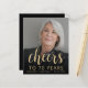 An der Vorderseite dieses 70. Geburtstags lädt der Gast des Fotos der Ehre mit einem goldfarbenen Textüberlagerungsstück ein. Das Wort "jubeln" erscheint in eleganter goldfarbener Kalligraphie-Schrift, gefolgt von "bis 70 Jahre" und dem Ehrengast und Geburtstag in serifenlosen Sans-Schriftart. Ein dunkler Bildschirm hilft, den Text-Pop zu machen. Passen Sie die Rückseite mit Namen und Party-Details auf einem schwarzen Hintergrund an. Eine tolle Art, jemanden zu feiern, der siebzig wird! (HINWEIS: Die Mittelansätze werden nicht automatisch in diese Haushaltseinladung aufgenommen. Um Umschläge zu Ihrer Bestellung hinzuzufügen, verwenden Sie bitte das Dropdown-Menü "Umschläge".)